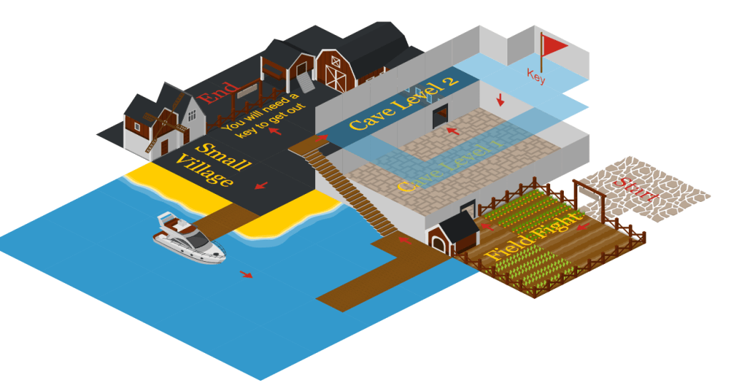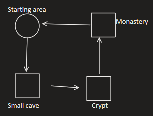 After getting the general idea for what mechanics, objectives and feelings we are looking for within a level I start sketching and creating flowcharts with level beats that give me a general idea of what the level will do. This is the fastest way to get some ideas on paper and start reasoning where certain level beats should go and how to arrange level order. I’ve found that this part is worth spending a decent amount of time on since we haven’t made anything yet. It’s easier to iterate on ideas when you haven’t committed to anything yet, but its also harder to tell what is going to work best in implementation if you don’t have working prototypes.