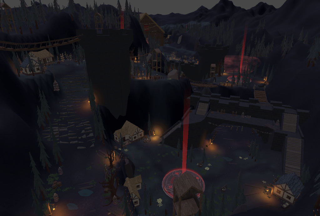 These are very early iterations of campaign levels for “Dreadmoon.” The initial idea for these levels was to have a more open world type of game play that encouraged exploration and discovery. With that in mind, the levels started out with large layouts and wide areas for possible enemy encounters.